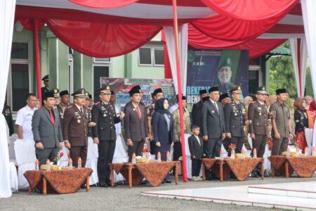 Seluruh peserta upacara, termasuk jajaran TNI, Polri, pemerintah daerah, dan masyarakat, terlihat antusias mengikuti rangkaian kegiatan yang berjalan dengan penuh kebersamaan tersebut.