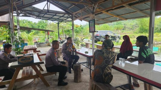 Kapolres Kampar dalam rangka menjaga situasi keamanan dan ketertiban masyarakat (Kamtibmas) menjelang Pilkada 2024, Kapolres Kampar AKBP Ronald Sumaja menyambang warga Bangkinang Kota tetapnya di Pembibitan Ikan Kecamatan Bangkinang Kota untuk melaksanakan Cooling Systim menyampaikan himbauan mengenai Pilkada Damai 2024, selasa, (1/10/24).