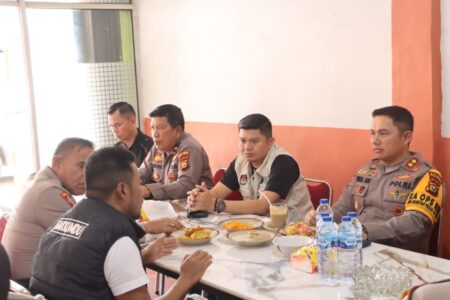 kapolres Pelalawan AKBP Afrizal Asri, S.H., S.I.K., memimpin kegiatan Coffee Morning dan Silaturahmi bersama Komisioner KPU dan Bawaslu Kabupaten Pelalawan di Kantin Sarapan Bundo Erin, Jalan Pepaya, Kecamatan Pangkalan Kerinci, pada hari Sabtu (5/10/2024).