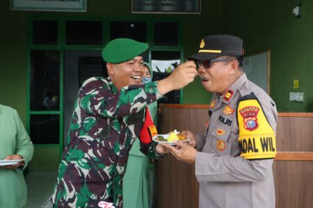 Rombongan Kapolsek dan Camat Rupat disambut langsung oleh Komandan Koramil 04/Rupat, Lettu Inf Budiamsyah Saragih. Terlihat suasana akrab dan penuh kekeluargaan di markas Koramil 04/Rupat. Sebagai ungkapan rasa syukur atas hari jadi TNI ke-79, terlihat pada acara pemotongan tumpeng, Komandan Koramil 04/Rupat memberikan nasi tumpeng yang telah dipotong kepada Kapolsek dan Camat Rupat yang diiringi dengan tepuk tangan dari personel Polsek, Kecamatan, serta anggota Koramil yang hadir.