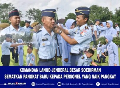 Kegiatan tersebut dilaksanakan pada upacara kenaikan pangkat, yang dipimpin langsung Komandan Lanud J.B. Soedirman dan diikuti seluruh Personel Lanud J.B. Soedirman, Penyematan tanda pangkat ini diberikan kepada 13 personel terdiri dari 2 Perwira kenaikan regular, 2 Perwira kenaikan pangkat penghargaan, 6 Bintara, 1 Tamtama, dan 2 PNS.
