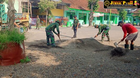 Koramil 0825/09 Tegaldlimo Gelar Kerja Bakti di TK Khadijah 23 dalam Rangka HUT TNI ke-79
