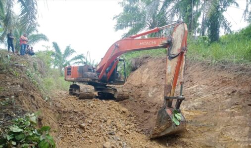 Memasuki hari ke 2 usai pembukaan tentara manunggal membangun desa (TMMD) Reguler ke – 122 Tahun 2024 Kodim 0103/Aceh Utara petugas dan alat berat fokus dalam pengerjaan program pembangunan jalan, Kamis (03/10/2024).