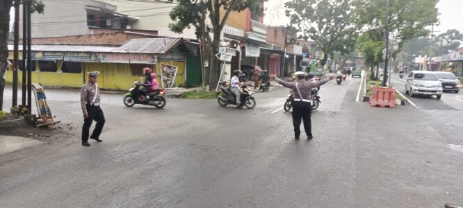 Personil Polres Langkat Laksanakan Strong Point, Cegah Laka Lantas