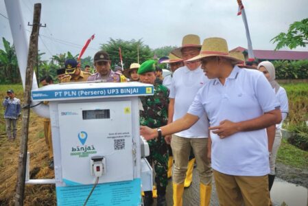 Pj. Bupati Langkat H.M. Faisal Hasrimy AP, M.AP, secara resmi meluncurkan program inovatif Listrik Masuk Sawah dengan sistem Binjai Smart Electric Poin (Bis LIPIN), di Kecamatan Binjai – Langkat, Selasa (8/10/2024). Program ini merupakan hasil kolaborasi antara Tim Pengendalian Inflasi Daerah (TPID) Kabupaten Langkat dan PLN UP3 Binjai untuk mendorong efisiensi energi di sektor pertanian dan mendukung pengendalian inflasi.