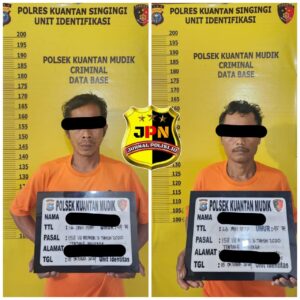 Saat tiba di Tempat Kejadian Perkara (TKP), petugas mendapati dua orang pelaku yang tengah melakukan aktivitas penambangan ilegal. Kedua pelaku yang diamankan adalah HP (45) dan HS (44), keduanya merupakan warga lokal yang diduga kuat terlibat dalam kegiatan penambangan emas tanpa izin. Setelah berhasil menangkap para pelaku, petugas segera membawa mereka beserta barang bukti ke Polsek Kuantan Mudik untuk dilakukan penyelidikan lebih lanjut.