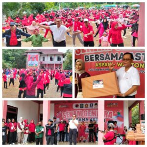 Halaman kantor DPC PDIP Kabupaten Tebo di jalan 21 Desa Perintis Kecamatan Rimbo Bujang, pada Minggu pagi (27/10/2024) ramai dipenuhi ratusan Emak – emak. Mereka mengikuti Senam Gembira bersama Paslon Bupati dan Wakil Bupati Tebo nomor urut 1, H Aspan – Wartono Triyan Kusumo atau Aston.