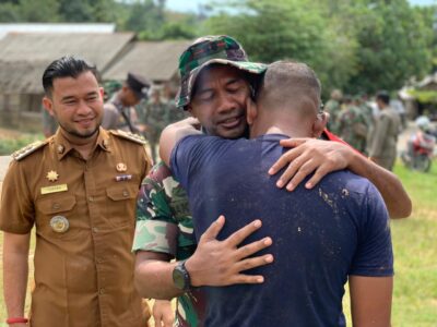 Melihat moment tersebut, Adnan M. Adam seketika memeluk Dandim Aceh Utara dengan meluapkan tangis haru sebagai ucapan terima kasih kepadanya.