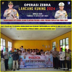 Sat Lantas Polres Kuansing melaksanakan kegiatan Police Goes to School Dalam rangka Operasi Zebra Lancang Kuning 2024, yang bertujuan untuk memberikan sosialisasi dan edukasi tentang keselamatan berkendara kepada siswa-siswi tingkat Sekolah Menengah Pertama (SMP) dan Sekolah Dasar (SD) Satu Atap. Kegiatan ini dilaksanakan pada hari Kamis (24/10/2024), mulai pukul 08.00 WIB hingga selesai.