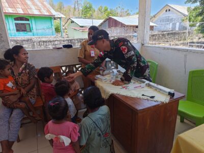 Sebanyak empat personel dari Pos Oepoli Sungai turut serta dalam kegiatan posyandu ini, yang bertujuan untuk memberikan layanan kesehatan bagi ibu dan anak di wilayah perbatasan. Kegiatan ini meliputi pemeriksaan kesehatan anak-anak, penimbangan berat badan, imunisasi, serta konsultasi kesehatan untuk ibu hamil dan menyusui.