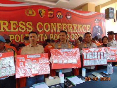 Satresnarkoba Polresta Bogor Kota berhasil mengungkap kasus penyalahgunaan narkotika dan obat keras tertentu, serta menangkap 23 orang tersangka yang di mana 2 orang tersangka adalah residivis. Hal tersebut diungkapkan Kapolresta Bogor Kota Kombes Pol Dr Bismo Teguh Prakoso saat menggelar press release di Mako Polresta Bogor Kota Jl. Kapt Muslihat Kota Bogor, Jawa Barat, Selasa (29/10/2024).