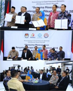 Kadivhumas Polri Irjen. Pol. Sandi Nugroho menghadiri penandatanganan Surat Keputusan Bersama (SKB) KPU, Bawaslu, KPI, dan Dewan Pers. SKB tersebut mengenai pembentukan Gugus Tugas Pemantauan Pemberitaan Pilkada 2024.
