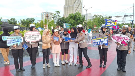 10 hari jelang pilkada riau 2024 tim cooling system ditlantas polda riau edukasi pengunjung cfd pekanbaru