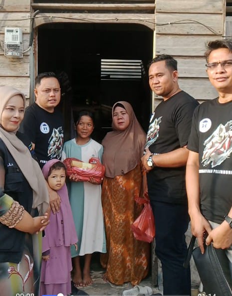 Tampak Ketua Komnas Perlindungan Anak Kabupaten Pelalawan, Erik Suhenra S.I.Kom didamping Sekretaris Mahyudi SH dan Bendahara Syamsul Harifin SH serta pendamping siaga Ella mengunjungi setiap rumah anak kurang mampu di Kecamatan Pangkalan Kerinci, Ahad (24/11/2024).