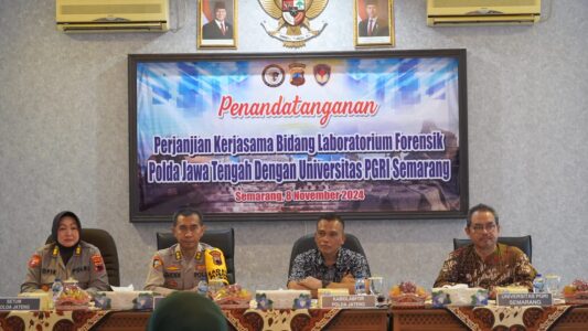 Polda Jateng-Kota Semarang | Bidang Laboratorium Forensik (Bidlabfor) Polda Jawa Tengah resmi menjalin kerja sama dengan Universitas PGRI Semarang (UPGRIS) melalui penandatanganan Perjanjian Kerja Sama (PKS) di Aula Lantai 2 Bidlabfor Polda Jateng, Jumat (8/11/2024) pagi. Kerja sama ini mencakup kegiatan Tri Dharma Perguruan Tinggi, yaitu pendidikan, penelitian, dan pengabdian kepada masyarakat.