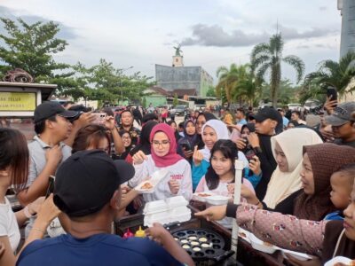 Dalam kegiatan tersebut, Nanda berkeliling menjumpai serta mencicipi makanan para pedagang. Tak hanya itu saja, Nanda juga memberikan makanan gratis kepada ratusan masyarakat yang datang di lokasi tersebut.