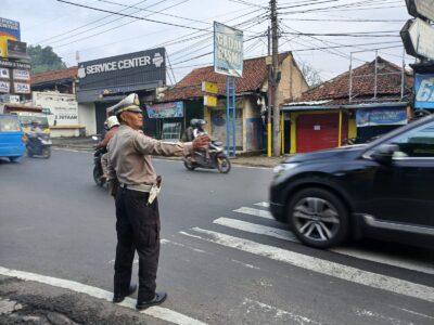 Ciptakan Rasa Aman Bagi Pengguna Jalan Raya, Personel Lantas Polsek Ciampea Atur Lalu Lintas