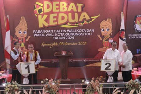 Komisi Pemilihan Umum (KPU) Kota Gunungsitoli menggelar Debat Publik Kedua Pasangan Calon (Paslon) Wali Kota dan Wakil Wali Kota Gunungsitoli di Gedung Salak Madu, Desa Faekhu, Kecamatan Gunungsitoli Selatan, Jumat (08/11/2024) malam.