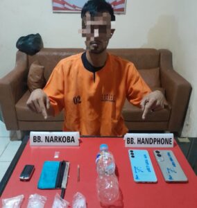Satresnarkoba Polres Kampar berhasil mengamankan seorang pelaku Narkoba berinisial RA (28) di rumahnya di Desa Merangin, Kecamatan Kuok, Kabupaten Kampar, Selasa (12/11/2024) sekira pukul 15.00 Wib.