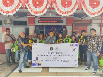 lembaga Pemasyarakatan (Lapas) Kelas IIB Teluk Kuantan bekerjasama dengan PT. Anugerah Vata Abadi (AVA) memberikan bantuan sosial (Bansos) kepada para keluarga narapidana yang membutuhkan, di halaman depan lapas, Jumat (15/11/2024).