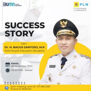 Manager PLN ULP Bengkalis dalam prolognya menyampaikan asal mula munculnya gagasan mentaja kegiatan dengan tajuk succes story menghadirkan Wabup Bagus Santoso. Ia mengetahui rekam jejak kisah sukses sosok Bagus Santoso yang diraih dari nol dapat memotivasi pegawai dan mahasiswa, bersamaan waktu instansinya merekrut mahasiswa program magang.