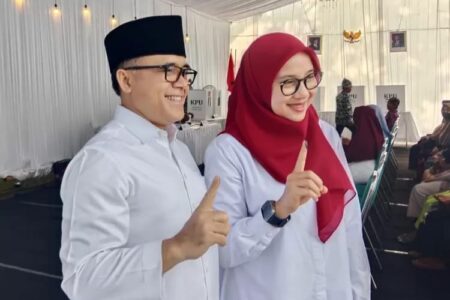 Calon Bupati Banyuwangi, Ipuk Fiestiandani, bersama suaminya, Abdullah Azwar Anas, menyalurkan hak suara mereka dalam Pemilihan Kepala Daerah (Pilkada) 2024. Pasangan ini mencoblos di Tempat Pemungutan Suara (TPS) 02 Desa Karangdoro, Kecamatan Tegalsari, Banyuwangi, pada Rabu (27/11/2024).