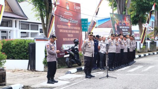 Kapolres Kuantan Singingi, AKBP Pangucap Priyo Soegito, S.I.K., M.H., dalam apel pengamanan tersebut memberikan arahan kepada seluruh personel yang bertugas untuk memastikan keamanan kegiatan berjalan lancar dan tertib. “Saya mengingatkan kepada seluruh personel untuk selalu menjaga keselamatan diri dalam setiap tugas pengamanan. Ingat, keselamatan adalah prioritas utama, dan kita tidak boleh lengah dalam menjalankan tugas,” ujar Kapolres.