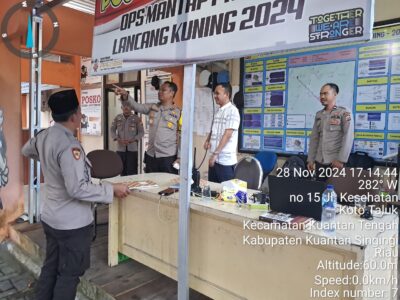 Kapolres Kuantan Singingi, AKBP Pangucap Priyo Soegito, S.I.K., M.H., yang juga bertindak sebagai Kepala Operasi Resor (Ka Ops Res) dalam Operasi Mantap Praja Lancang Kuning 2024, melaksanakan pengecekan langsung terhadap personel pengamanan di Kantor Bawaslu Kabupaten Kuantan Singingi. Kegiatan tersebut berlangsung pada Kamis (28/11/2024), pukul 15.30 WIB.