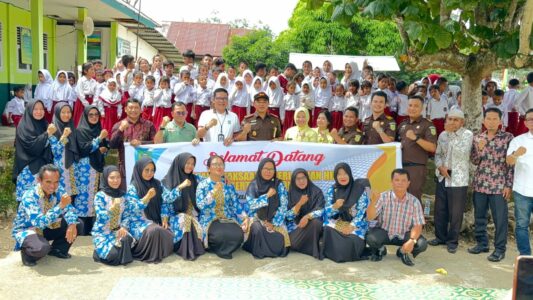 Dukung program presiden prabowo, kejaksaan negeri rokan hulu garcep memberikan 150 Paket paket makanan siang 4 sehat 5 sempurna gratis kepada siswa sekolah dasar
