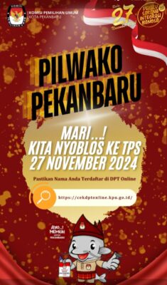 KPU Kota Pekanbaru dalam rangka Pilwalkot mengajak seluruh warga masyarakat kota pekanbaru ” Mari kita nyoblos ke TPS Pada tanggal 27 Novembwr 2024 “