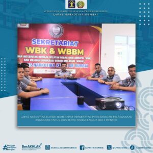 Lembaga Pemasyarakatan (Lapas) Narkotika Kelas IIB Rumbai Kanwil Kemenkumham Riau secara daring melalui zoom meeting mengikuti Rapat Percepatan Program dan Pelaksanaan Anggaran Tahun 2025 Serta Tindak Lanjut Keputusan Bersama 3 Menteri, yakni Menteri Hukum, Menteri HAM, Menteri Imigrasi dan Pemasyarakatan, Senin (4/11/2024).