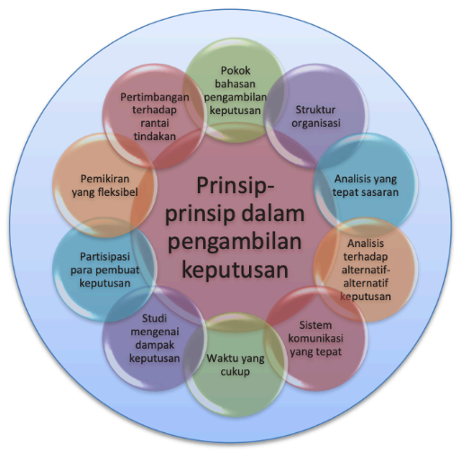 Dalam pengambilan keputusan yang efektif akan melibatkan dua aspek penting yaitutujuan pengambilan keputusan yang dimaksudkan dan situasi lingkungan tempatpengambilan keputusan tersebut. Bahkan keputusan terbaik dan benar pun bisa menjaditidak efektif jika aspek-aspek ini diabaikan; karena dalam pengambilan keputusan adabegitu banyak rantai di dalam dan di luar reaksi yang tidak dapat dihindari. Menurut Drucker(2009), terdapat prinsip-prinsip yang harus dimiliki dalam pengambilan keputusan.