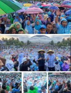 Walaupun di landa hujan deras yang mengguyur Desa Pelompek, Kecamatan Gunung Tujuh Kabupaten Kerinci Provinsi Jambi, tidak membuat surut semangat ribuan warga yang hadir di lapangan bola kaki pelompek, Senin (04/11/2024). Pengukuhan tim pemenangan Monadi – Murison 13 Desa di kecamatan Gunung Tujuh diwarnai pemandangan memukau, di mana warga yang datang dari berbagai pelosok desa rela berbasah-basahan demi menyatakan dukungan penuh pada pasangan “pejuang petani” Kerinci.