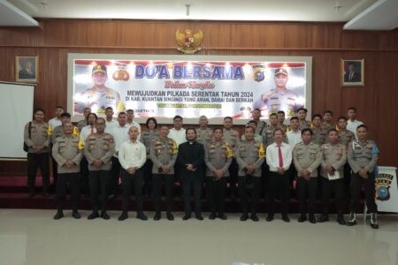 Kapolres Kuantan Singingi, AKBP Pangucap Priyo Soegito, S.I.K., M.H., menyampaikan bahwa kegiatan doa bersama ini merupakan bagian dari upaya membangun kekuatan moral dan spiritual para personel Polri untuk mendukung pelaksanaan Pilkada yang aman, damai, dan demokratis.