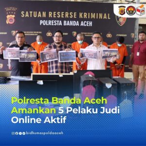 “Sesuai dengan arahan Bapak Kapolri dan Bapak Kapolresta Banda Aceh, kita berkomitmen untuk mendukung program dari Bapak Presiden dalam memberantas segala bentuk perjudian, khususnya di wilayah hukum Polresta Banda Aceh,” pungkasnya.