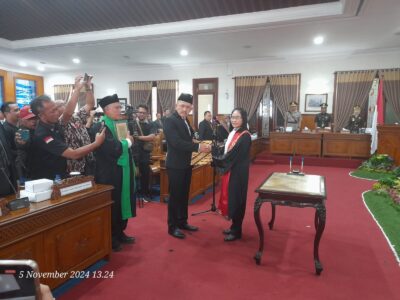 Pengambilan Sumpah Janji Ketua DPRD Kabupaten Tulungagung yang diselenggarakan di Gedung Graha Wicaksana Kantor DPRD kabupaten Tulungagung pada hari Selasa (05/11/2024) ini disaksikan oleh Pj. Bupati Tulungagung Dr. Ir. Heru Suseno, M.T. bersama serta turut dihadiri oleh Forkopimda, Kepala BNNK, Asisten, Camat, Kepala OPD, Serta Anggota DPRD Tulungagung.