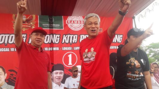 Sedangkan Sadewo Tri Lastiono yang juga hadir pada kegiatan tebus murah sembako ini menyampaikan dalam logat Jawa menyampaikan,” Ampun Kesupen Nggih tanggal 27 November pilih No.01 nggih,wong sekolah neng pengin dadi juara ya kudu No.01, terus ibu ibu juga nek nduwe bojo kan juga bojone mung Siji…dadi pokokke mengko pas pemilihan 27 November 2024, Nggo Bupatine pilih Nomer 01(Siji),Nggo Gubernurre juga Nomer 01( Siji ), Andika Hendi…Menang,Menang…Menang,Sadewo Lintarti…Menang,Menang,…Menang,” ungkap Sadewo