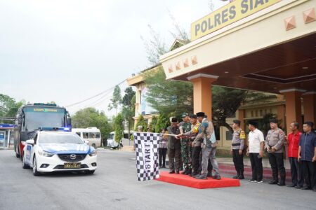 Wakapolda Riau Pimpin Upacara Pemberangkatan Personil Pengamanan TPS Pilkada di Kabupaten Siak