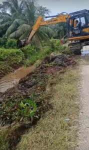“Kami melakukan pengerukan saluran air di Jalan Dusun satu bantal jaya sekitar 100metel hari ini Karena menjadi langganan banjir air Hujan