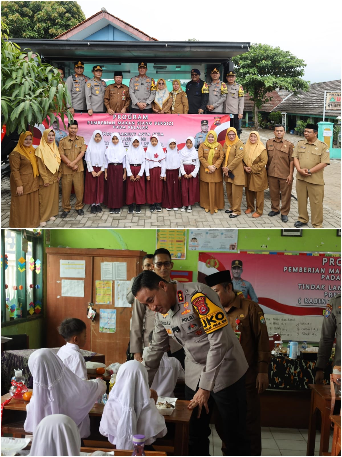 Polda Banten menggelar program pemberian makan siang bergizi pada pelajar sebagai tindak lanjut Asta Cita Presiden RI bertempat di SDN Lopang Cilik, Kecamatan Serang, Kota Serang.