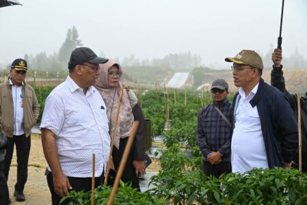 Direktur Perlindungan Perkebunan dan Kepala Balai Penerapan Standard Instrumen Pertanian didampingi Bupati Humbahas meninjau penanaman kentang, bawang merah dan cabai yang ada di area lokasi Food Estate Desa Hutajulu hingga area lokasi Food Estate yang berada di Desa Riaria Kecamatan Pollung.