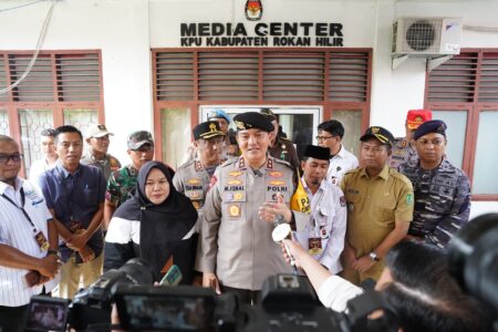 Kepala Kepolisian Daerah (Kapolda) Riau, Irjen Pol H Muhammad Iqbal SIK MH, memantau langsung proses rapat pleno terbuka rekapitulasi hasil penghitungan suara Pemilihan Gubernur dan Wakil Gubernur, Bupati dan Wakil Bupati Rokan Hilir (Rohil) di Komisi Pemilihan Umum (KPU) setempat, Senin (2/12/2024). Kegiatan ini juga dihadiri oleh sejumlah pejabat penting lainnya, di antaranya Kabid Propam Polda Riau Kombes Edwin Louis Sengka, Waka SPN Polda Riau AKBP Indra Kenang, serta berbagai pejabat dari KPU dan Bawaslu Rokan Hilir.