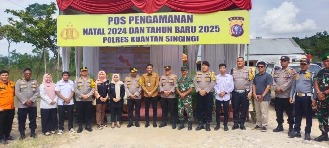 Dalam rangka memastikan kelancaran dan keamanan perayaan Natal 2024 dan Tahun Baru 2025, Kapolres Kuantan Singingi, AKBP Pangucap Priyo Soegito, S.I.K., M.H., bersama Kepala Dinas Kesehatan Provinsi Riau, drg. Sri Sadono Mulyanto, M.Han., melaksanakan pengecekan dan monitoring Pos Pengamanan (Pos PAM) dan Pos Pelayanan (Pos Yan) di wilayah Kabupaten Kuantan Singingi. Kegiatan ini berlangsung pada Rabu, (25/12/2024), mulai pukul 09.30 WIB hingga pukul 15.00 WIB.