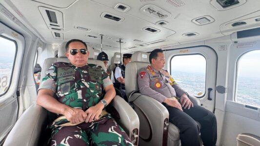 Kapolri dan Panglima TNI terlihat duduk berdampingan di atas helikopter. Keduanya memantau secara langsung arus mudik di Km 70 Tol Cikopo kemudian kembali ke Km 57 Jakarta-Cikampek. Pemantauan dilakukan untuk memastikan kelancaran arus mudik libur Natal 2024 dan tahun baru 2025.