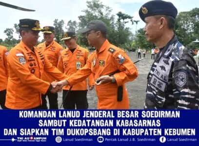 Komandan Lanud J.B. Soedirman Letkol Pnb Tatag Onne Setiawan, S.I.P., M.Han., menyambut kedatangan Kepala Badan Nasional Pencarian dan Pertolongan (Kabasarnas) Marsdya TNI Kusworo, S.E., M.M., bertempat di Lapangan Sekolah Calon Tamtama (Secata) Rindam IV Diponegoro, Kecamatan Gombong, Kabupaten Kebumen. Minggu (15/12/2024).