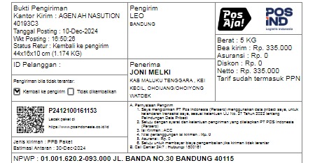 Khabarnya paket masih berada di kota Ambon. Adapun paket yang dikirimkan beralamatkan di Kabupaten Maluku Tenggara, Provinsi Maluku.