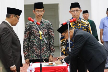 Wakil Wali Kota Bukittinggi, Marfendi, melantik Al Amin, S.Sos, MM sebagai Pj Sekretaris Daerah (Sekda) Kota Bukittinggi. Pelantikan dan pengambilan sumpah, berlangsung di Balairung rumah dinas wako, Minggu, 8 Desember 2024.
