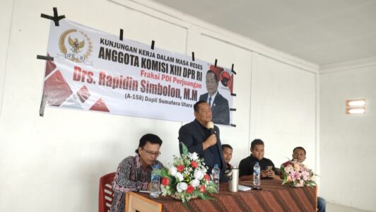 Anggota DPR RI dari Fraksi PDIP Drs.Rapidin Simbolon, MM melakukan Kunjungan Reses di Kecamatan Pangaribuan Kabupaten Tapanuli Utara bertempat di Aula GKPI Pakpahan, Kamis, 12/12/2024.