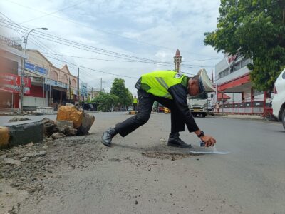 Mitigasi Jelang Nataru, Polres Situbondo Tandai Jalan Berlubang di Jalur Pantura