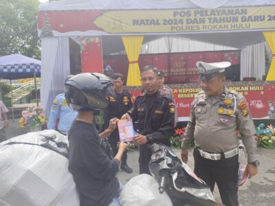 Operasi Lancang Kuning 2024, Dalam rangka mendukung pelaksanaan Operasi Lilin LK 2024, Satuan Lalu Lintas Polres Rokan Hulu melaksanakan kegiatan pembagian brosur kepada masyarakat di wilayah hukum Polres Rokan Hulu. Kegiatan ini berlangsung di Pos Yan Pematang Baih, Jalan Tuanku Tambusai, Pasir Pangaraian, pada Kamis (26/12/2024) sekitar pukul 10.00 WIB.